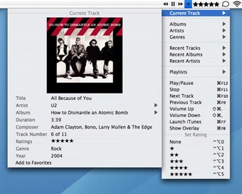 You Control: iTunes coloca un acceso directa al reproductor iTunes desde la Barra de Menús, con lo cual podremos controlar la reproducción, navegar por los álbumes y hasta cambiar la valoración de un tema sin salir de la aplicación en la que estamos, pasarse a iTunes y volver donde estabamos.