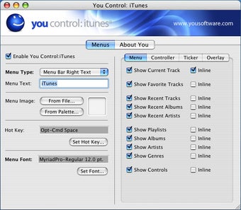 En definitiva, You Control:iTunes nos ahorra tiempo y nos ofrece un mando a distancia de lo más completo para iTunes. Un simple vistazo a la Barra de Menús nos bastará para conocer el título de la canción, valorarla. También dispone de atajos de teclado para que el control sea todavía más preciso y veloz.